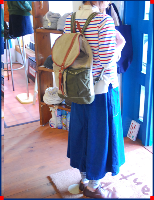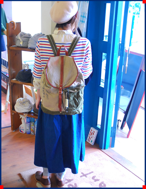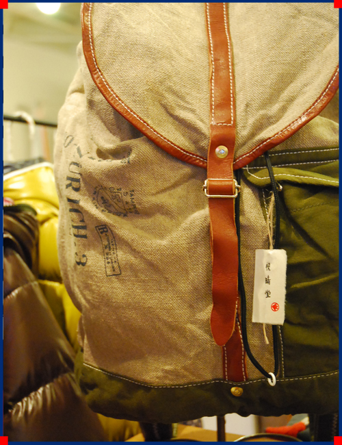 快晴堂らしい麻とレザーのリュック。
