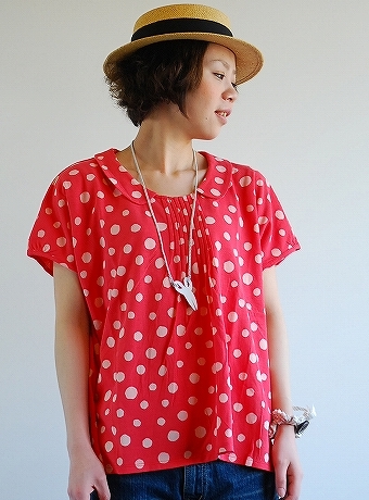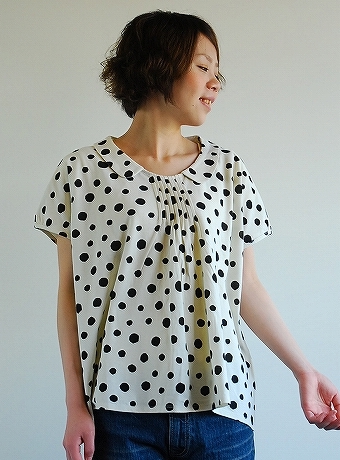 【写真:bulle de savon 強撚天竺ドット丸衿ピンタックプルオーバー ¥7,245】