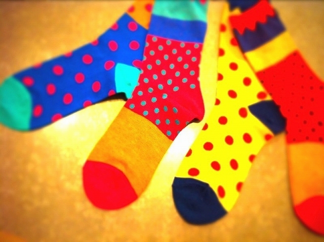 【写真:bulle de savon コットン配色ドットミドルソックス ¥1,575】