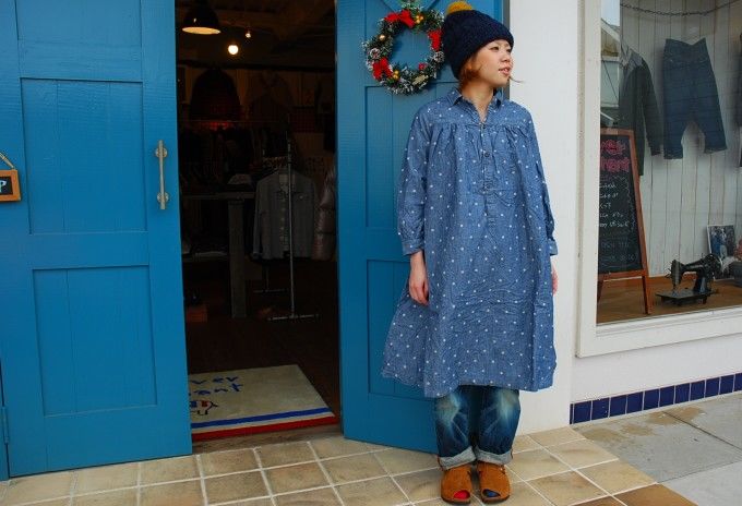 OMNIGOD ドットプリントシャンブレーワンピース、完売致しました!!
