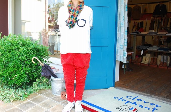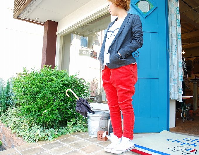 ビビットなコーデュロイ素材のストレッチパンツです♪