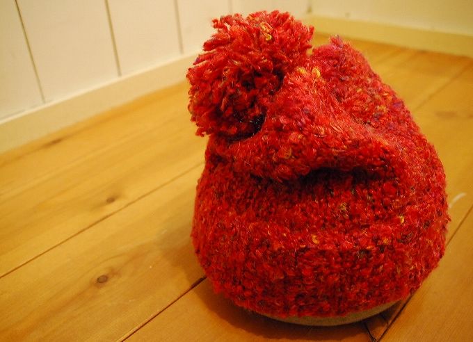 真っ赤な真っ赤なボンボンニット帽♪