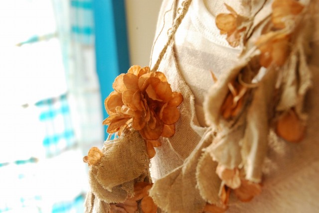 アンティークフラワーリネンフラワーカチューシャ、ラリエット...