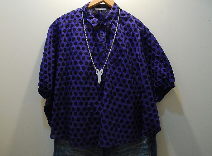 prit TOP糸ダブルガーゼ水玉プリントルーズシャツ