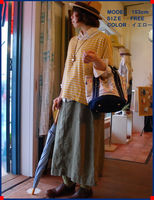 そして、今回はイエローボーダーに合わせて、キナリのシャツを合わせやさしい色合いに統一させてみました。