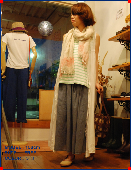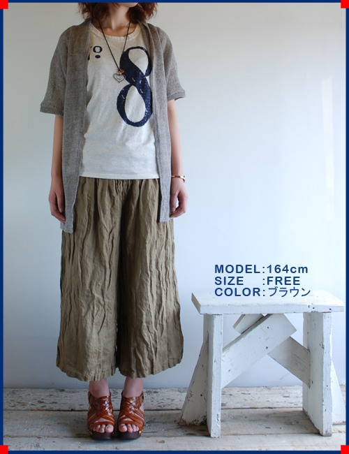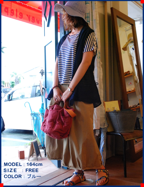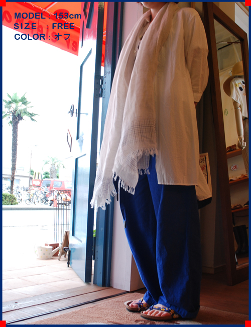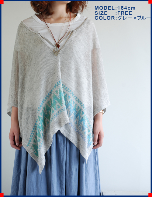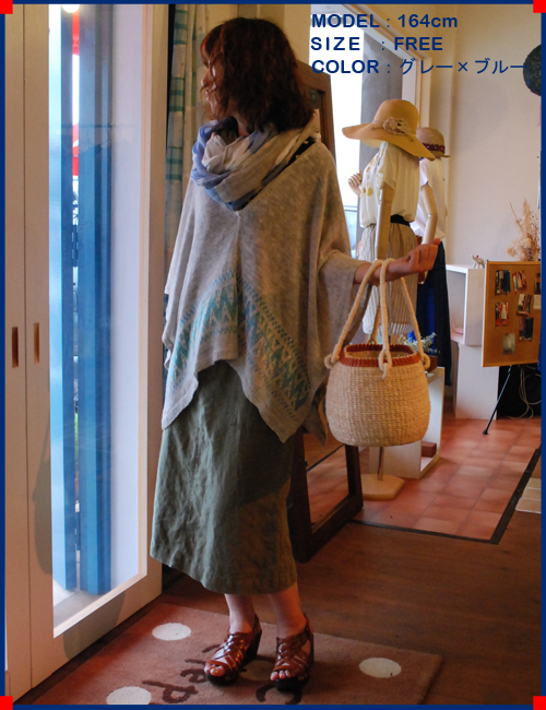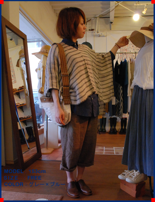 二重織りの麻素材でとても軽く涼しい本ポンチョですシャツに合わせて、ボトムもさらっとしたリネンパンツを合わせています。