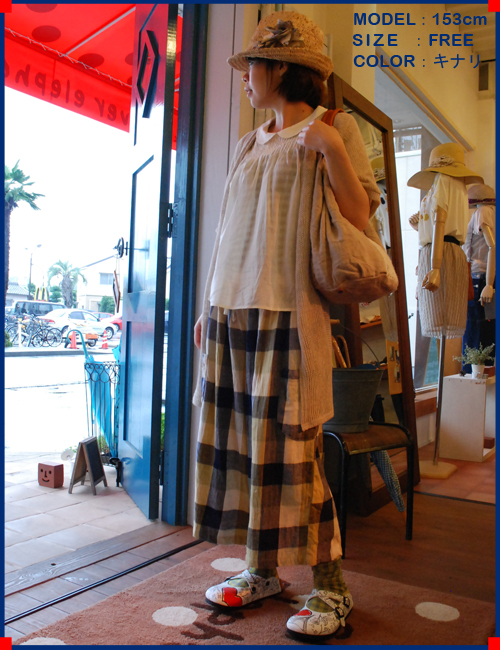 ブラウスにキュロットパンツだなんてありがちかな?と思ったので、バッグや帽子、小物で動きを見せ、はっきりとは見えないインナー、足元で遊び心を取り入れたり。
