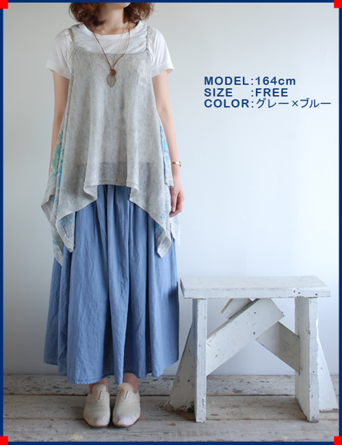 このふわっと感のブラウスものって1枚で着るよりも重ね着して楽しむアイテムなのですが、結構夏場の重ね着って敬遠するというお声をいただくことがあるんです。