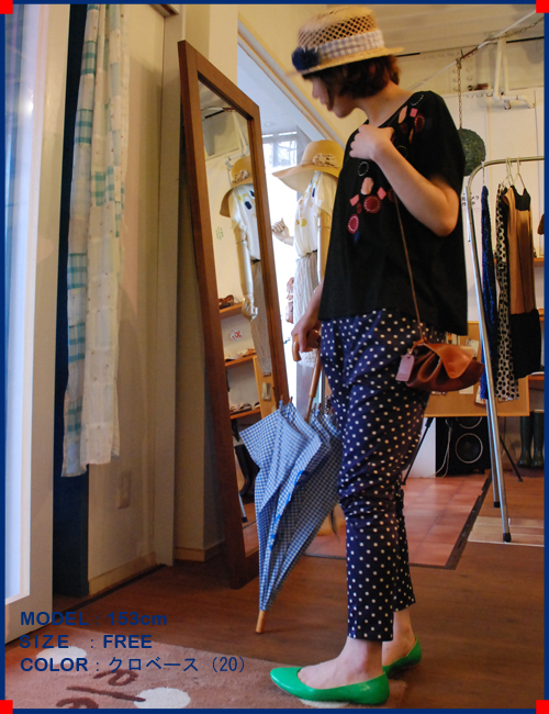 よく見ると、ブラウスのインナーにはボーダータンクを合わせて着ているという、クレバーエレファントお得意の「柄×柄」スタイル♪