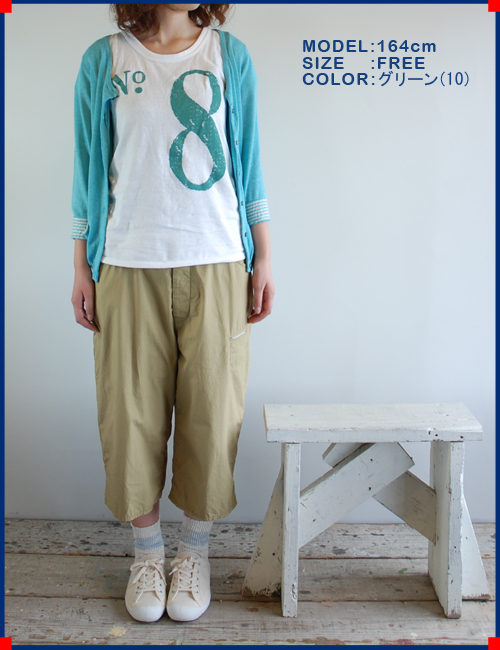 huafaタックボーダーポケット8分袖カーディガン・グリーン ¥6,825