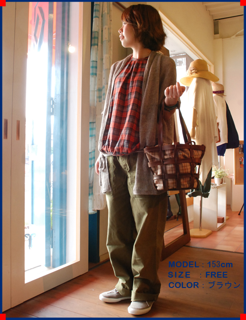 カーディガンのカラーはブラウン。 |