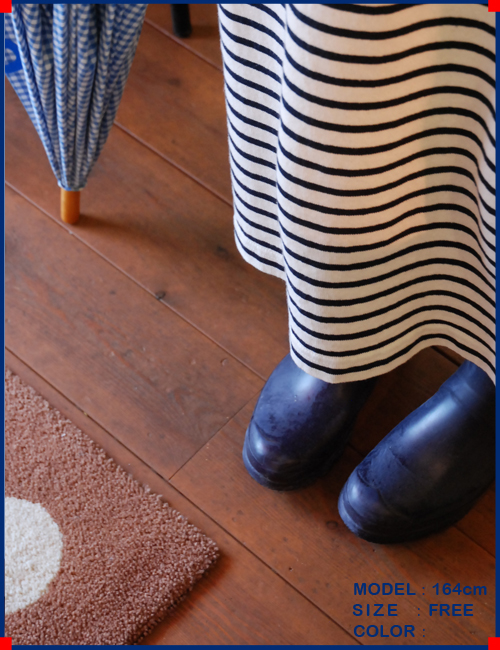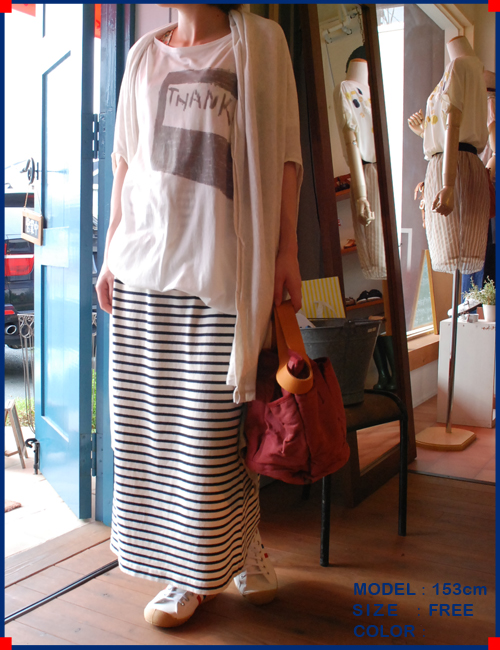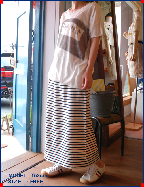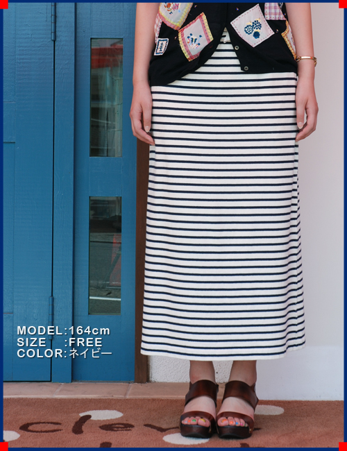 カジュアルなボーダー柄とマキシ丈という大人な上品さを合わせ持ったスカートです。