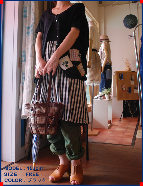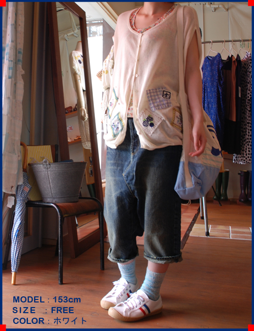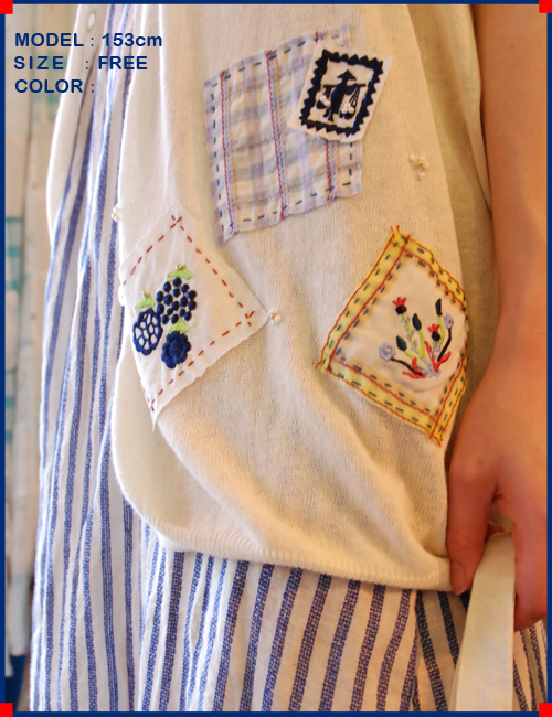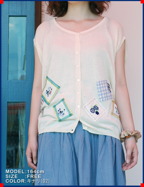 変型のカーディガンに華やかさを増したパッチワークカーディガンです。