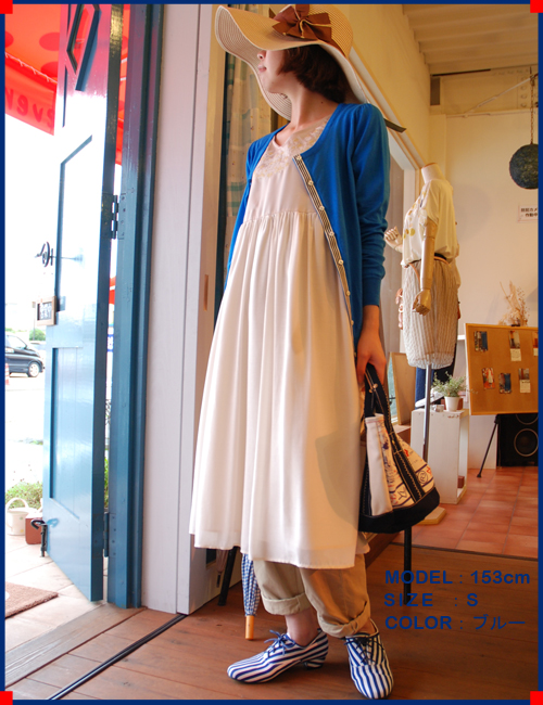 シューズに合わせて、カーディガンもブルーで合わせてみました。