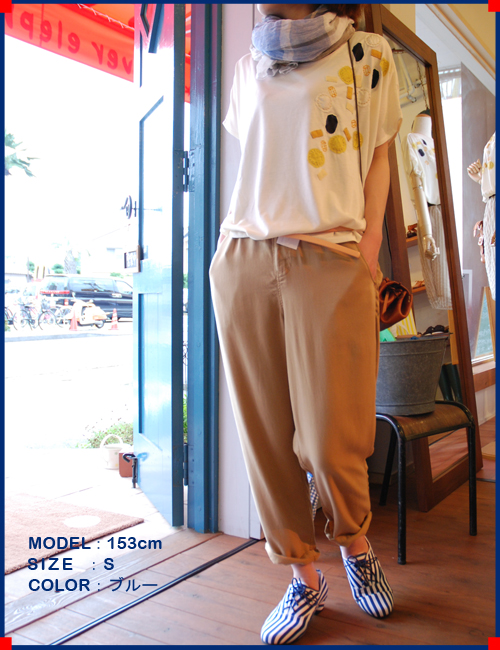 | バギーの裾からチラリ見えるブルーストライプが目を惹きますね! |