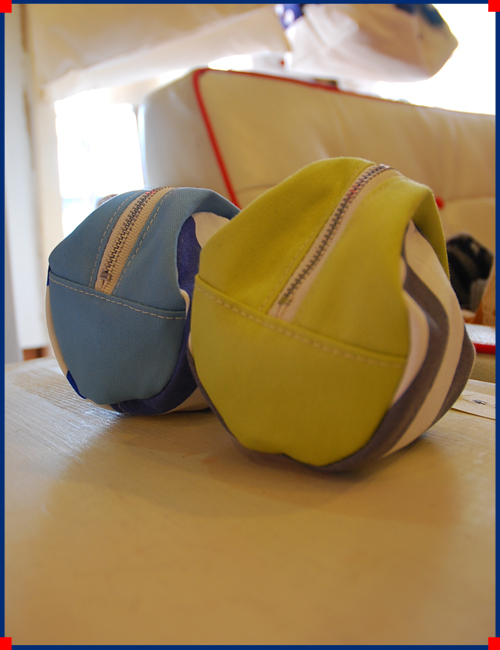 ○(まる)と△(さんかく)と、□(しかく)のポーチ。